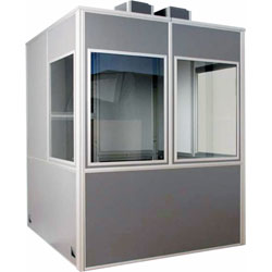 Instalatia de traducere simultana se compune dintr-un numar de receptori pentru fiecare ascultator , un emitator si o cabina izolata fonic pentru traducatori .